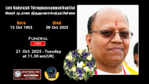 Funeral Service Live Late Rasaiah Thavamani – 03 Nov 2024 – Sunday at 10.00am(UK Time)